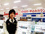 大手家電量販店でインターネットサービスをお客様にご案内し、契約等のお手伝いをしています。またチラシや風船を配ったり、イベントなどで現場を盛り上げています。営業時間 平日 10:00~19:00 ※土日も電話受付しております